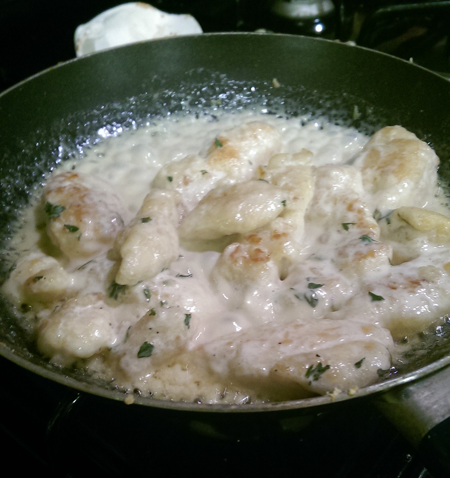 Lemon Creme Chicken This was an unexpectedly delicious chicken meal. We had some whipping cream, chicken broth and lemon left over from another recipe, so being the poor recent graduates that we are, we don’t want to waste anything so we searched for a recipe with both lemon and cream, and came up with this gem. Thanks Taste of Home for this delicious recipe:
