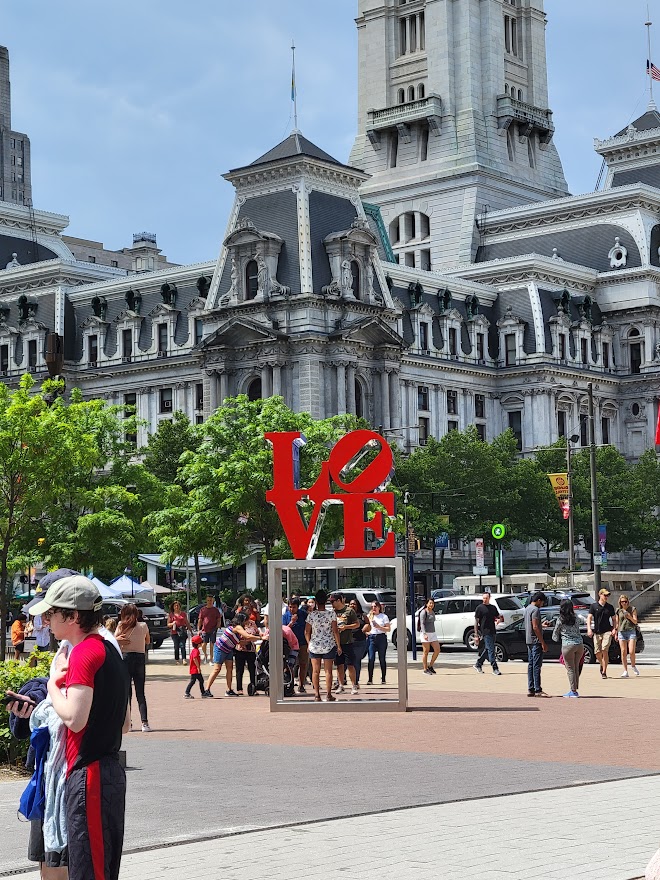 When we left New York on day 3 we headed to the city of brotherly love. I will tell you, I had no idea how green Pennsylvania is and I absolutely loved and missed the greenness of home while I was there. We met up with two of Whitney’s friends there who were also attending the wedding and were able to visit Reading Terminal which, is not as it sounds a lovely bookstore with endless books for your enjoyment. It instead is a market full jam packed with food vendors. I am not the biggest fan of crowds, especially when stuffed into small spaces. This market was maybe the size of a small Target and the equivalent of a full-fledged farmer’s market jam packed into it, with an area for eating in the middle.