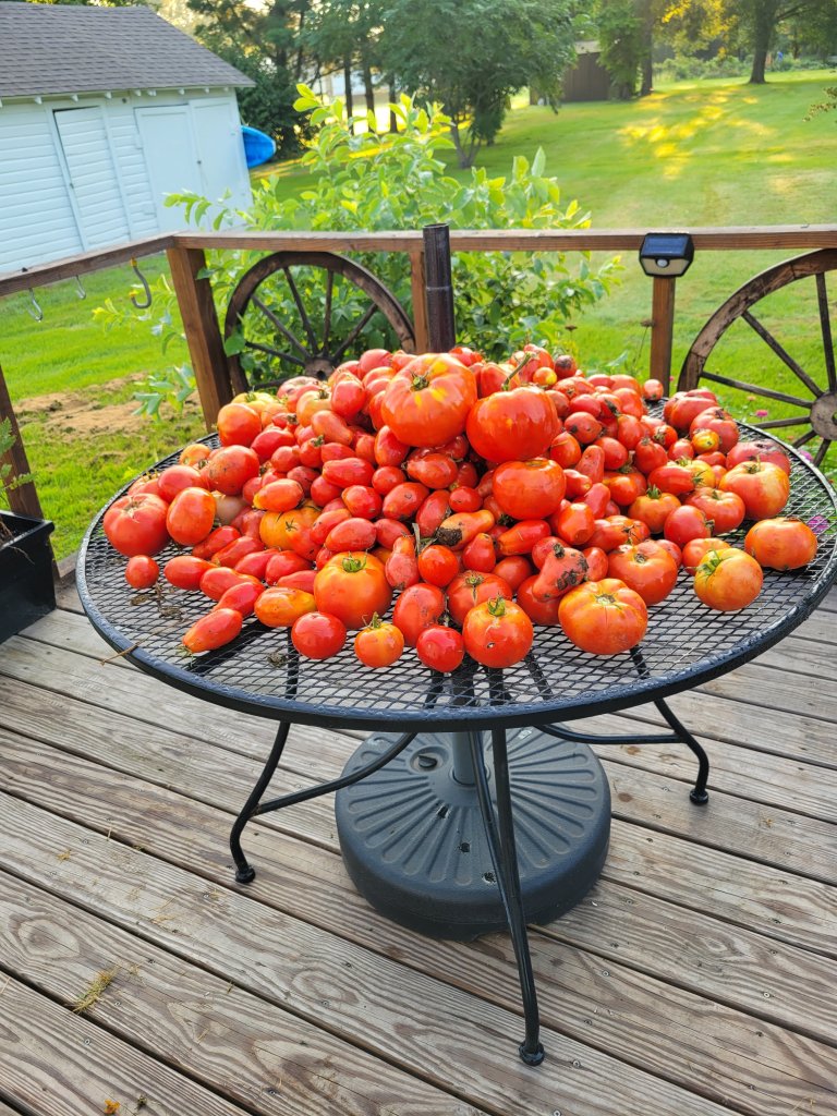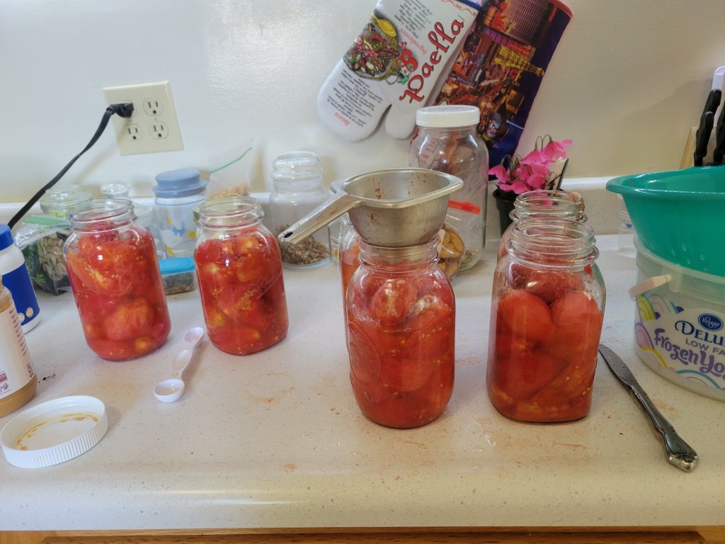 However, despite the struggles, it turns out I may be the only pet sitter in the area with any experience and reviews, and requests are more than expected. Also, since arriving on Wednesday, we have harvested and canned 26 cans of pre-salsa (tomatoes), 11 cans of fresh grape juice, 1 large wheelbarrow full of potatoes and a bag of pears. Everything from the garden. We also picked a few ears of corn. I will say, I am still struggling finding work and things in that respect have not seemed to improve much, but I got to go to another ward with my dad today and saw some friends I haven’t seen for years.