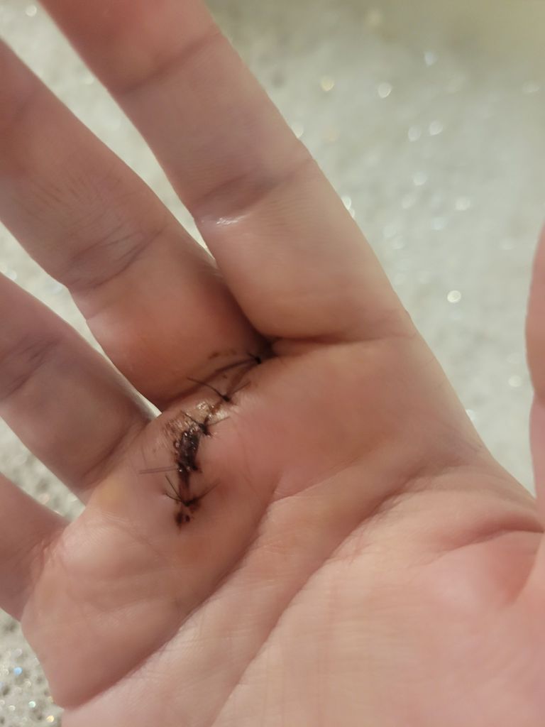 Slips happen and are no big deal to other people. We forget who we are talking to. The girl who fell walking up a staircase in junior high. This is also the same girl who tripped over a rock that was so miniscule when examined later, you found yourself questioning how this was possible. I have been told I deserve to be in bubble wrap, or maybe I just need to be whether I deserve it or not. Anyways… back to the story. I started my hike, no one was on any of the trails. I came to a spot that could tell was going to be slippery so I braced myself and decided to take the slide with grace, thinking I could probably just get my rear end a little muddy and move on. No big deal right? Well, when i took that “slide” slope or whatever you want to call it… as you may have already guessed, things did not go gracefully. I caught myself on branch at the base of a tree and punctured it between the first and middle fingers. My first stitches experience was born. Don’t worry more experiences will occur before the summer is over.