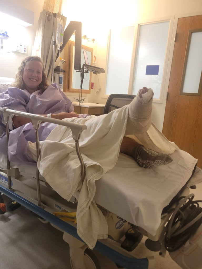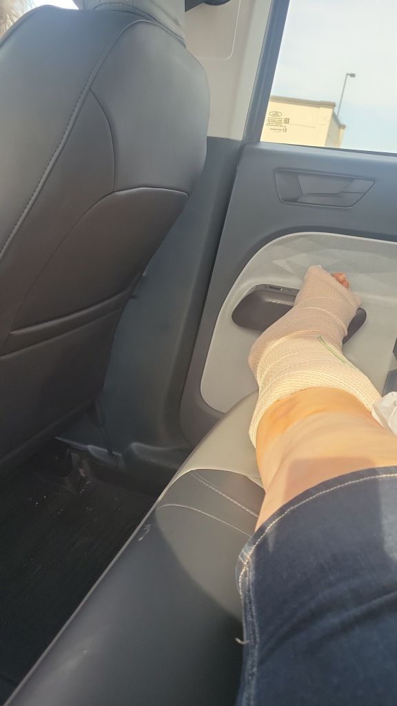 The Xrays showed two fractures, which would require surgery. BUT, I was in another state. I had to fly home, with crutches and a hard cast. Which required a full body pat down, wheelchair assistance and a whole mess of other fun things.