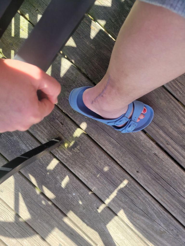It all started when I went for a walk in the woods near my church, with what was supposed to be a group of people. I headed in, even though I arrived late, planning on just hiking alone. It was a morning hike in the summer,. It is a fairly well traveled public park that I had hiked in previously quite a bit. I started the hike and things were going well. It had rained the previous evening and, me, hoping to keep the truck and my life as “unmuddy” as possible set off in my hiking sandals, expecting to maybe slip a little, but slips happen right? No big deal? WRONG!